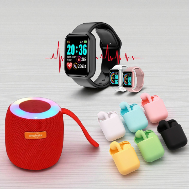 ¿Querés llevar tu tecnología al siguiente nivel sin gastar de más? Te presentamos el 3X1 SMARTWATCH + AURICULARES Y PARLANTE DE REGALO. Sí, leíste bien: un smartwatch súper moderno, unos auriculares inalámbricos de alta calidad y un parlante portátil, todo en un solo paquete y ¡con regalo incluido! 🎁✨